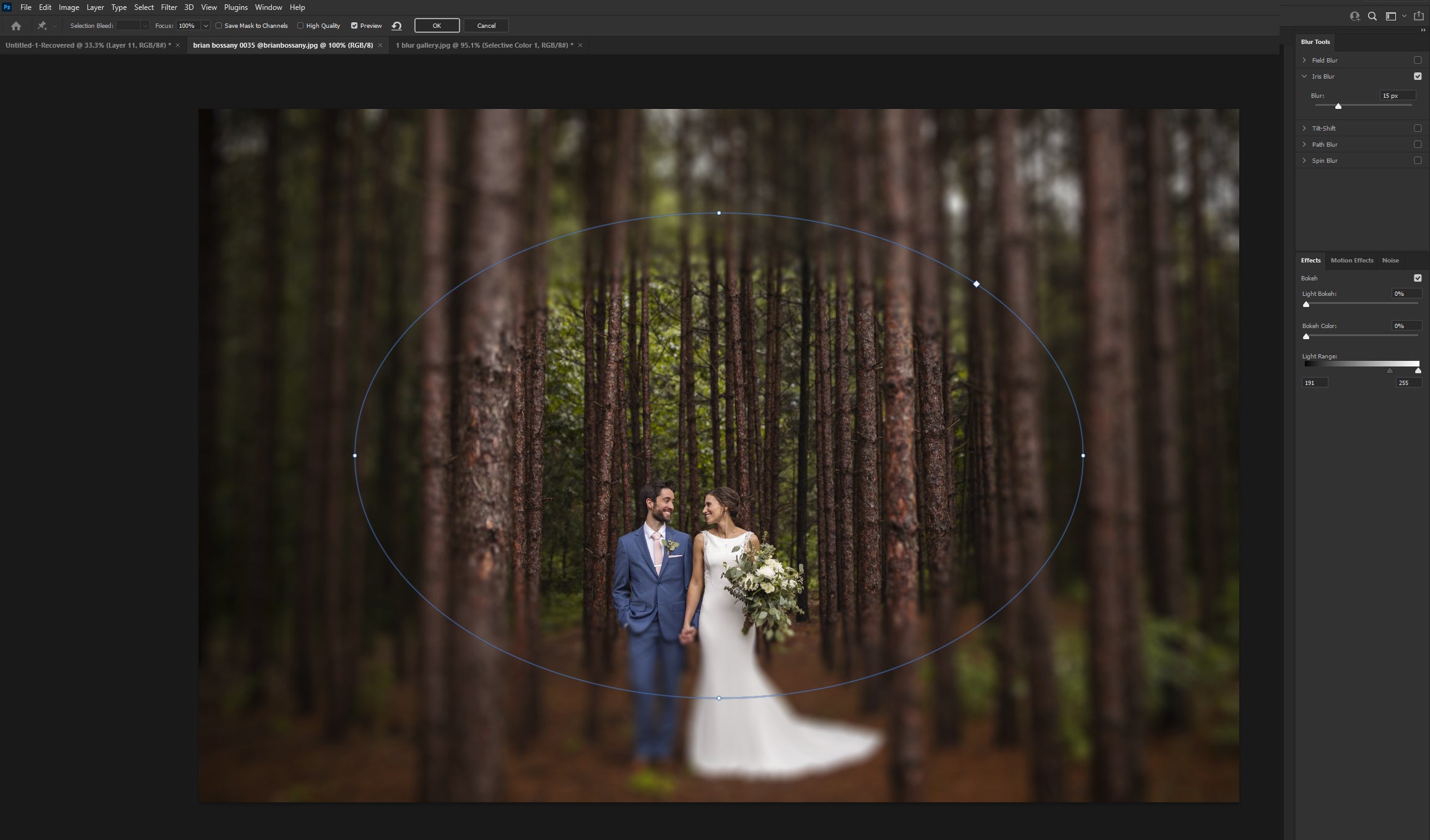 - Apply the blur effect, distorting and changing the blur area to maximize the effect.