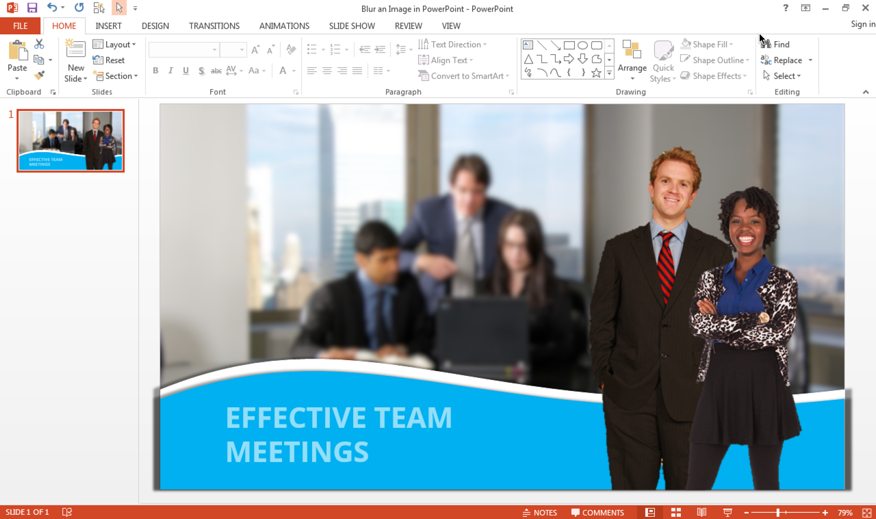 Did you know that you can blur photo using office software? Powerpoint is used to create a slide show program, but it provides some additional photo editing tools that allow you to blur pictures, and it doesn't require you to download any extra software. In the following I will introduce how to create a blur effect on a picture using PowerPoint: